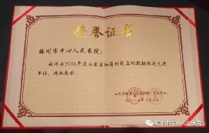 我院被評為2016年度山東省細(xì)菌耐藥監(jiān)測數(shù)據(jù)報送先進(jìn)單位