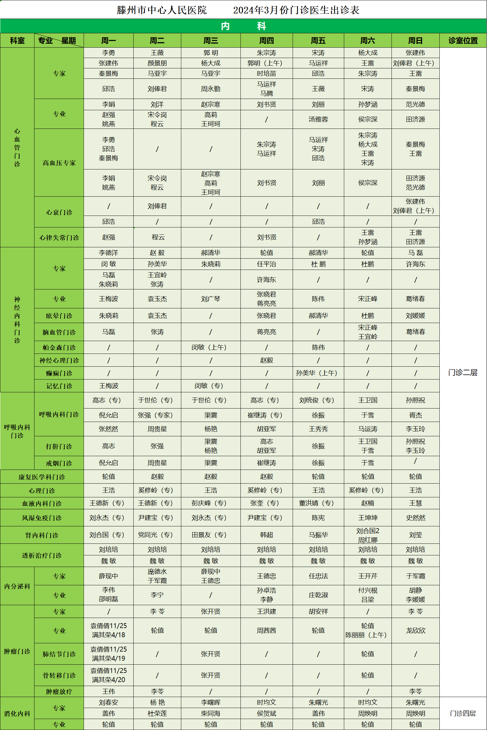 關(guān)注 | 滕州市中心人民醫(yī)院3月份專(zhuān)家、專(zhuān)業(yè)門(mén)診排班表