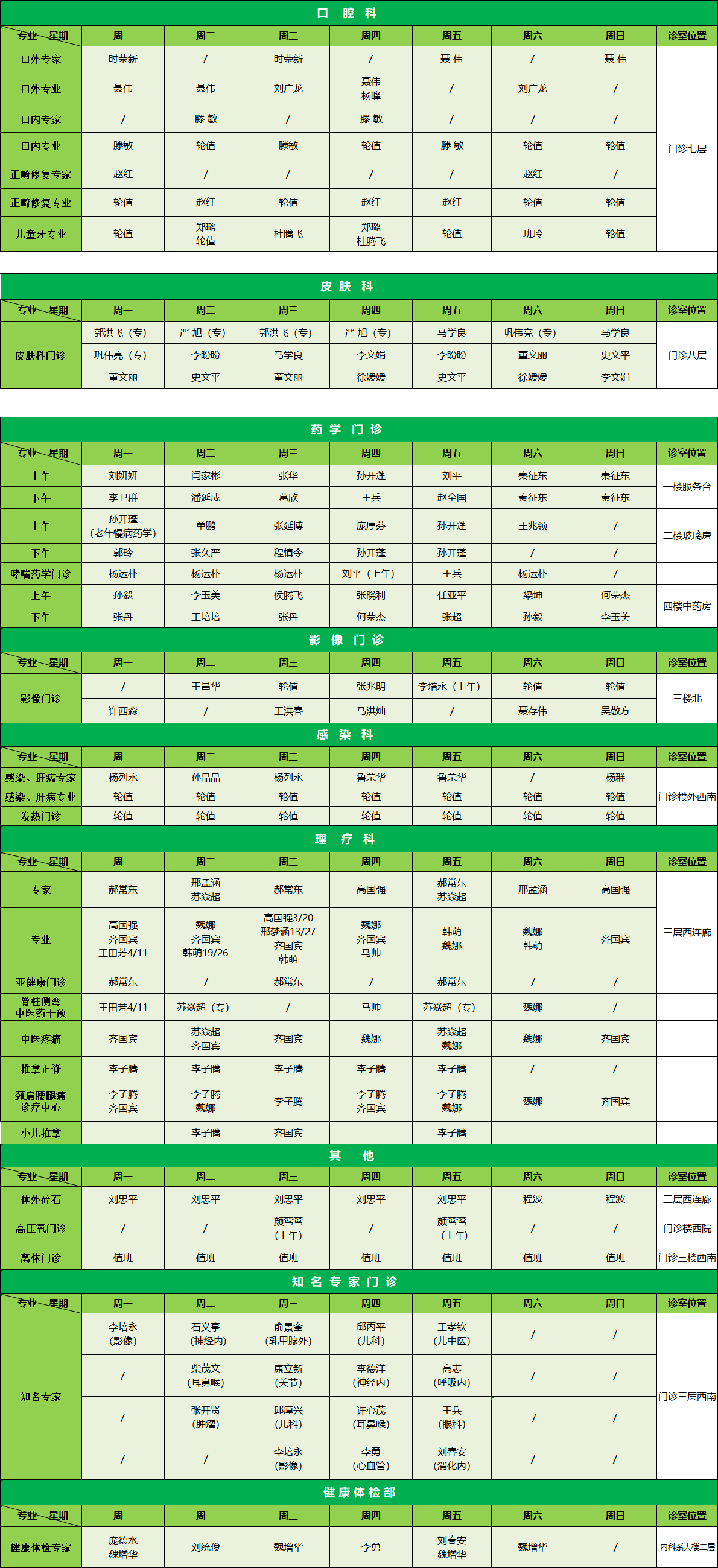 特殊情況醫(yī)生有停替診,以當(dāng)日號(hào)表為準(zhǔn),門診部會(huì)及時(shí)通知預(yù)約病人。