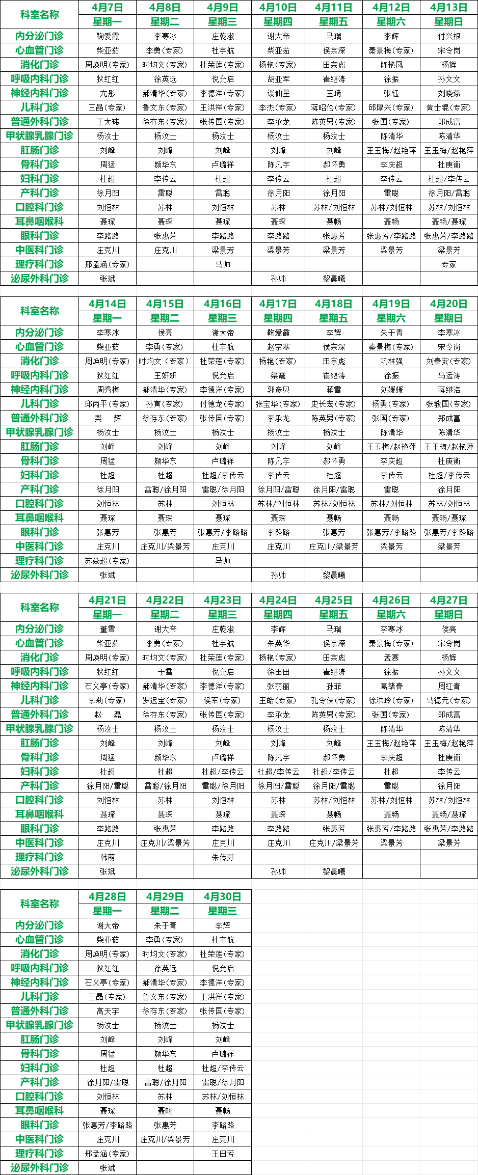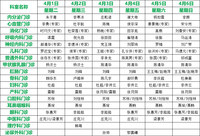 關(guān)注 | 滕州市中心人民醫(yī)院4月份專家、專業(yè)門診排班表