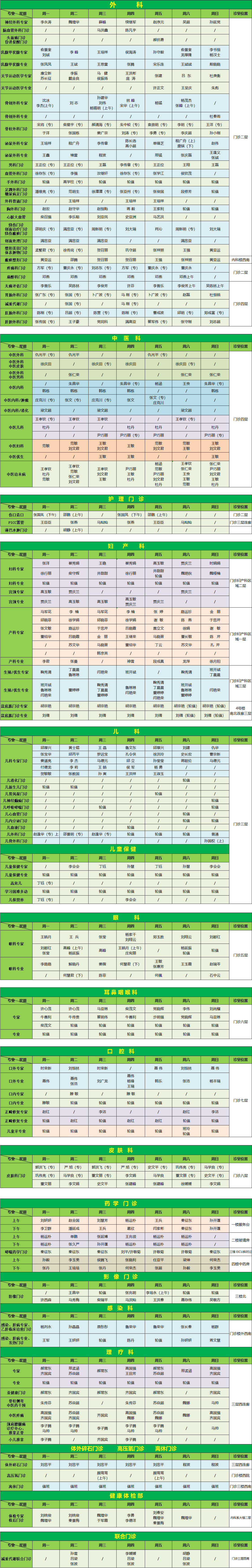 為了提供優(yōu)質的醫(yī)療服務,我們?yōu)槟l(fā)布最新的門診醫(yī)生坐診信息,便于您根據(jù)自身情況,選擇合適的醫(yī)生、合適的時間就診,希望能為您的就診帶來便利。