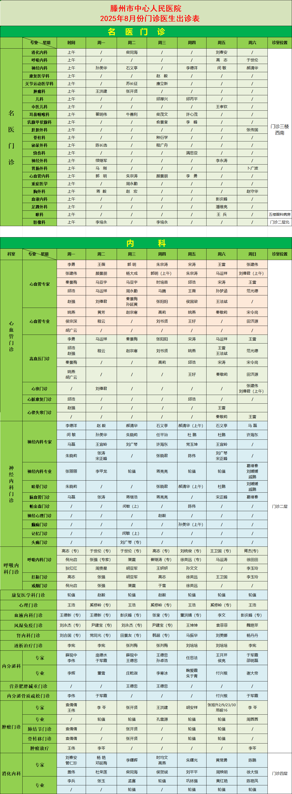 關注 | 滕州市中心人民醫(yī)院8月份專家、專業(yè)門診排班表
