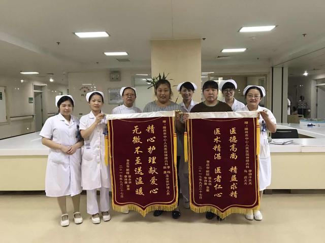 如今,在全科醫(yī)護(hù)人員的悉心照顧下,李阿姨的病情已完全康復(fù)。為表示感謝,李阿姨囑咐家人送來(lái)繡有 “精心護(hù)理獻(xiàn)愛(ài)心 無(wú)微不至送溫暖”等兩面錦旗。看著李阿姨和家屬眼含熱淚的笑臉,神經(jīng)內(nèi)三科全體醫(yī)護(hù)人員從心底感到高興,我們?cè)僖淮斡米约旱男袆?dòng)證實(shí):只要我們把患者當(dāng)成自己的親人,把患者的需求作為我們工作的中心,把患者的健康作為我們最大的目標(biāo),真心一定可以換來(lái)真心! (郭 萍)