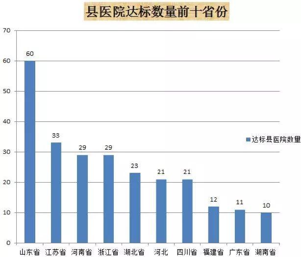 近日,國家衛(wèi)生健康委辦公廳發(fā)布《關(guān)于印發(fā)達(dá)到縣級(jí)醫(yī)院綜合服務(wù)能力推薦標(biāo)準(zhǔn)縣醫(yī)院名單的通知》,并公布全國達(dá)到縣級(jí)醫(yī)院綜合服務(wù)能力推薦標(biāo)準(zhǔn)縣醫(yī)院名單,共有來自全國24個(gè)省市的300家縣醫(yī)院榮列其中。其中,山東共有60家縣級(jí)醫(yī)院入選,榮膺縣級(jí)醫(yī)院達(dá)標(biāo)數(shù)量之冠??h醫(yī)院達(dá)標(biāo)數(shù)量前十省份依次為:山東、江蘇、河南、浙江、湖北、河北、四川、福建、廣東、湖南。