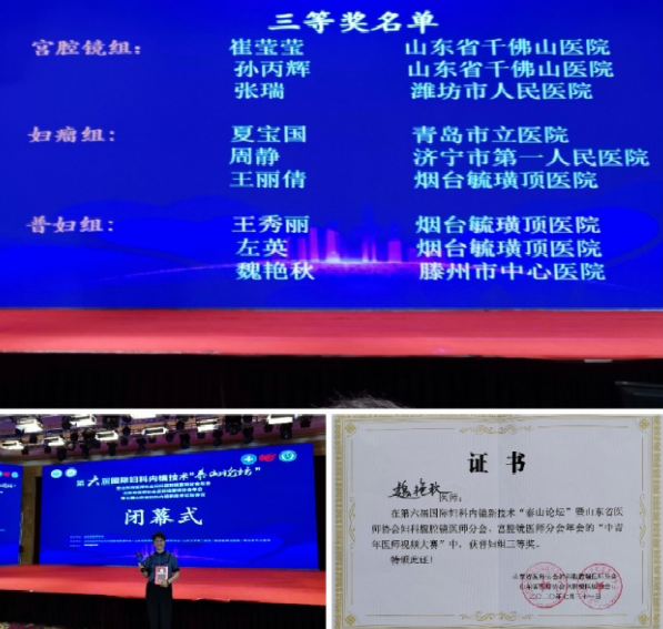 在大會(huì)中青年醫(yī)師手術(shù)視頻大賽環(huán)節(jié),來(lái)自省內(nèi)各大醫(yī)院婦科的30余份手術(shù)視頻參與普婦組比賽,經(jīng)專家初評(píng),僅10份視頻進(jìn)入決賽。決賽設(shè)一、二、三等獎(jiǎng)及優(yōu)勝獎(jiǎng),我院婦一科魏艷秋醫(yī)師的“經(jīng)臍單孔免氣腹手術(shù)”視頻進(jìn)入腹腔鏡普婦組決賽,并取得了三等獎(jiǎng)的好成績(jī)。