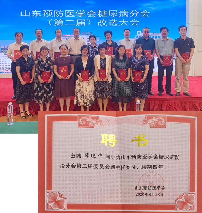 薛現(xiàn)中主任醫(yī)師當(dāng)選山東省預(yù)防醫(yī)學(xué)會(huì)糖尿病防治分會(huì)副主任委員