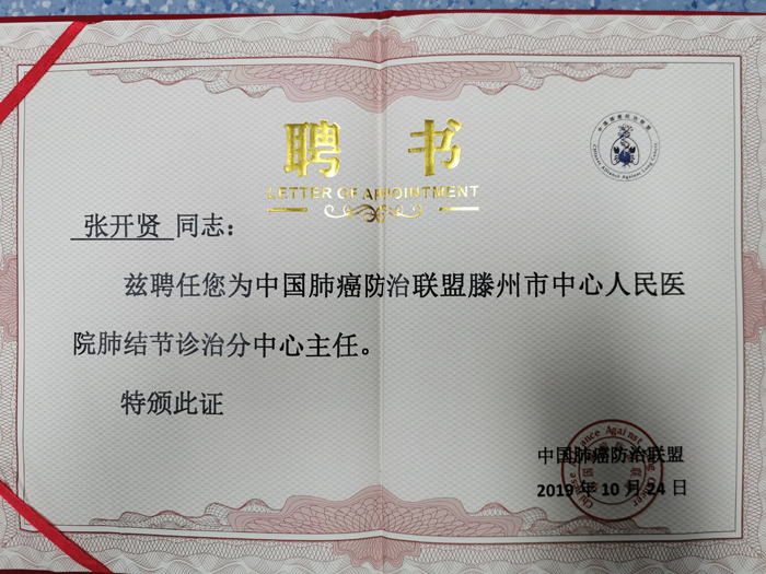 12月19日,中國肺癌防治聯(lián)盟滕州市中心人民醫(yī)院肺結(jié)節(jié)分中心揭牌儀式在滕州舉行,受中國肺癌防治聯(lián)盟主席白春學(xué)教授的委托,張敏教授代表聯(lián)盟與我院楊瓊院長共同為肺結(jié)節(jié)分中心揭牌,張敏教授宣讀白春學(xué)教授的賀詞并為我院腫瘤科張開賢教授頒發(fā)肺結(jié)節(jié)分中心主任證書。肺結(jié)節(jié)分中心的成立必將對我院肺結(jié)節(jié)診療水平的提高起到積極作用!