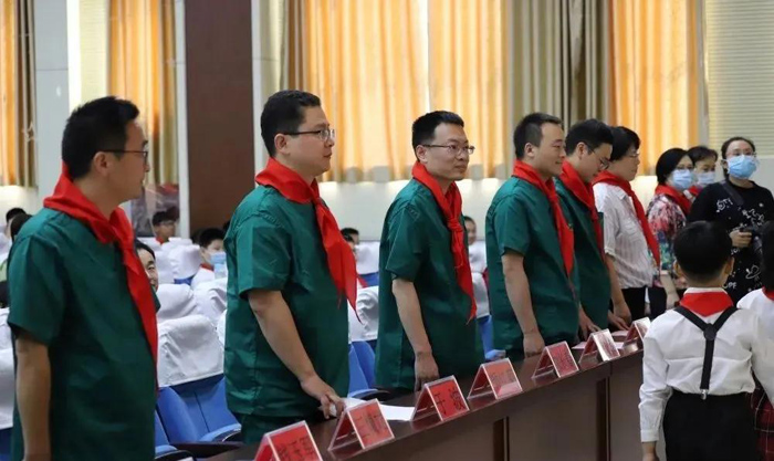 少先隊(duì)員代表敬獻(xiàn)紅領(lǐng)巾