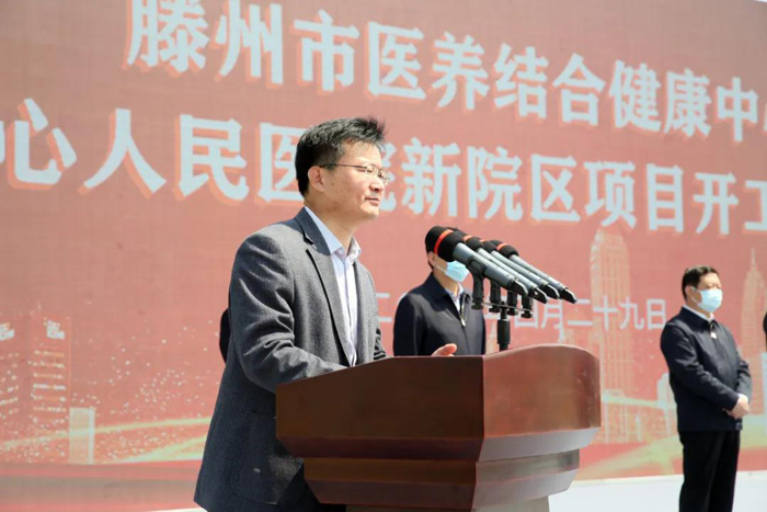 滕州市醫(yī)養(yǎng)結(jié)合健康中心暨中心人民醫(yī)院新院區(qū)項(xiàng)目作為全市重大民生工程,不僅是滕州醫(yī)療衛(wèi)生事業(yè)發(fā)展的需要,也是順應(yīng)城市發(fā)展規(guī)劃、有效應(yīng)對(duì)公共衛(wèi)生事件、改善人民群眾就醫(yī)環(huán)境、提升生活品質(zhì)的迫切需要。項(xiàng)目自啟動(dòng)以來(lái),得到了市委、市政府及相關(guān)部門的大力支持和幫助。今后,市中心人民醫(yī)院將不辱市委市政府交給的光榮使命、不負(fù)全市人民的希望和重托,全力以赴做好新院區(qū)建設(shè)的各項(xiàng)工作,堅(jiān)持高標(biāo)準(zhǔn)、快速度、高質(zhì)量地完成項(xiàng)目建設(shè)任務(wù)。通過(guò)項(xiàng)目合作、高端人才引進(jìn)、科研成果轉(zhuǎn)化等多種途徑,將新院區(qū)打造成為集醫(yī)療、科研、教學(xué)、急救、康復(fù)、醫(yī)養(yǎng)等于一體的大型三級(jí)甲等綜合醫(yī)院和現(xiàn)代化的區(qū)域性醫(yī)療中心,為加快建設(shè)美德滕州、文明滕州、富強(qiáng)滕州作出新的更大貢獻(xiàn)!