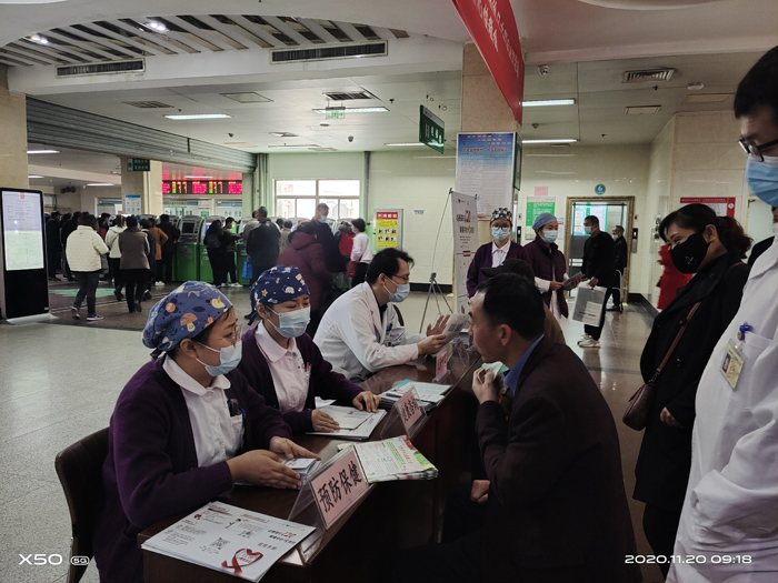 當(dāng)日,我院心內(nèi)科在門診大廳開(kāi)展“1120心梗救治日”義診、宣傳活動(dòng),為來(lái)院就診人員進(jìn)行發(fā)放宣傳資料,提供健康咨詢:讓群眾了解什么是急性心梗?發(fā)生急性心梗的自救處理,如何撥打120等基本知識(shí)。使公眾認(rèn)識(shí)急性心肌梗死的危害,提升出現(xiàn)胸痛癥狀及時(shí)撥打120的意識(shí)。