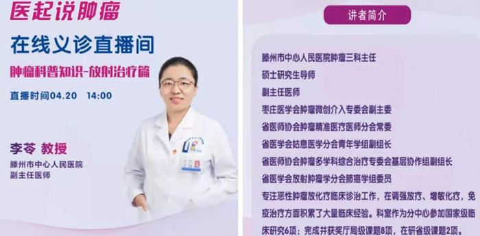 李苓主任開展線上講座——腫瘤放射治療篇,向廣大在線病友傳播防癌抗癌健康知識,為在線提問的百姓耐心解答困惑,傳播科學(xué)防癌理念,贏得了在線病友的一致稱贊。