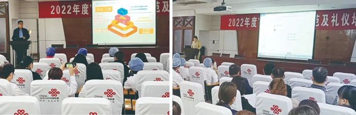 培訓(xùn)會上,門診部主任夏令國對《公共服務(wù)視角下以人為本的門診服務(wù)》做精彩演講,醫(yī)德醫(yī)風(fēng)辦公室副主任王玉敏從醫(yī)德醫(yī)風(fēng)的基本概念、基本要求、從古至今的醫(yī)德典范以及工作中的工作紀(jì)律、著裝、言行需要注意的問題等多方面進(jìn)行詳細(xì)講解。