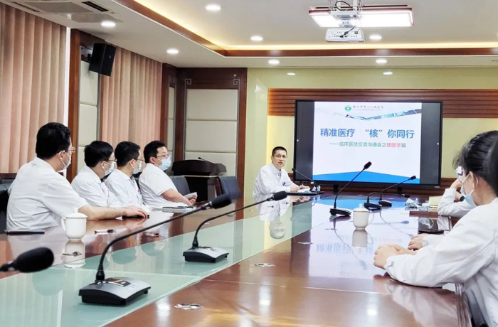 會上,孫卓浩主任指出,核醫(yī)學(xué)是現(xiàn)代醫(yī)學(xué)的主要標志之一,應(yīng)用價值和潛力巨大。目前,我院在臨床應(yīng)用方面與上級醫(yī)院有差距,召開交流溝通會的目的,一是介紹宣傳核醫(yī)學(xué)的臨床應(yīng)用;二是征求臨床科室的要求和建議,改善服務(wù)。