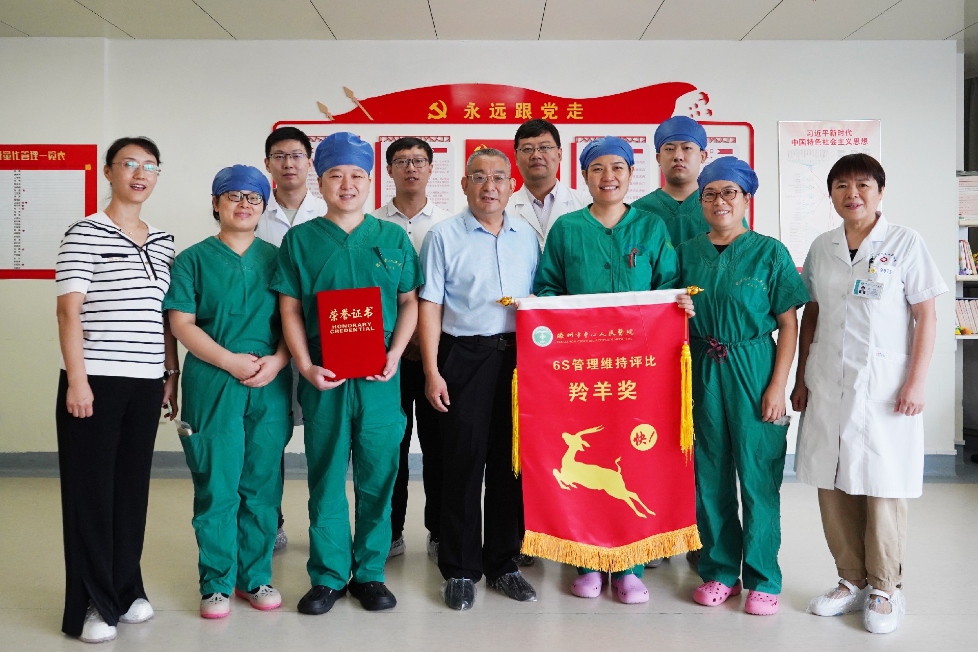 院黨委委員、紀(jì)委書(shū)記趙逢平為胃腸外科、婦科一病區(qū)、CCU、手術(shù)室、設(shè)備科5個(gè)科室及門診三樓1個(gè)區(qū)域授予“流動(dòng)羚羊旗”,以激勵(lì)先進(jìn),引領(lǐng)后進(jìn)。