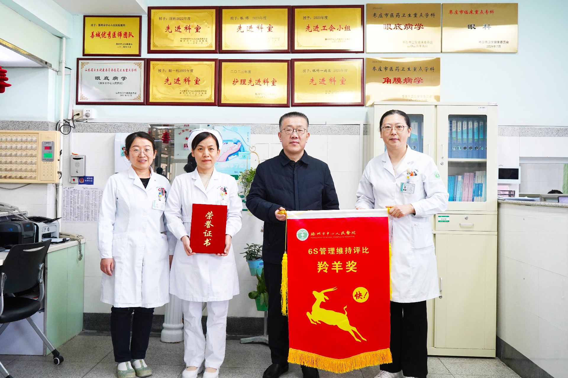 近日,院黨委副書(shū)記朱紹猛,黨委委員、黨群工作部主任王維,為2024年第四季度6S管理維持工作獲得羚羊旗的科室授旗,以激勵(lì)先進(jìn),引領(lǐng)后進(jìn)。