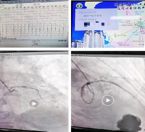 9月23日9:30分,西崗中心衛(wèi)生院通過遠程心電網(wǎng)絡(luò)發(fā)現(xiàn)一例急性緊急梗死患者,胸痛中心聽班電話聯(lián)系網(wǎng)絡(luò)醫(yī)院醫(yī)生及患者家屬,并與患者家屬溝通后,啟動胸痛中心綠色通道,120救護車“雙繞”導(dǎo)管室,10:40分于前降支成功植入支架1枚,門球時間30分鐘,患者安返監(jiān)護病房進一步救治。自我院創(chuàng)建胸痛中心以來,對胸痛患者的識別