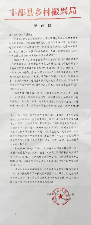 @滕州市中心人民醫(yī)院,一封來自豐都縣的感謝信,請查收