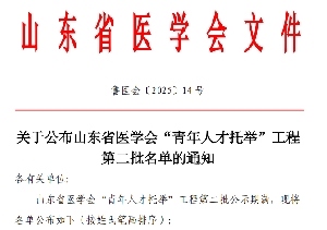 山東省醫(yī)學會第二批 “青年人才托舉工程” 名單公布,我院兩名醫(yī)···