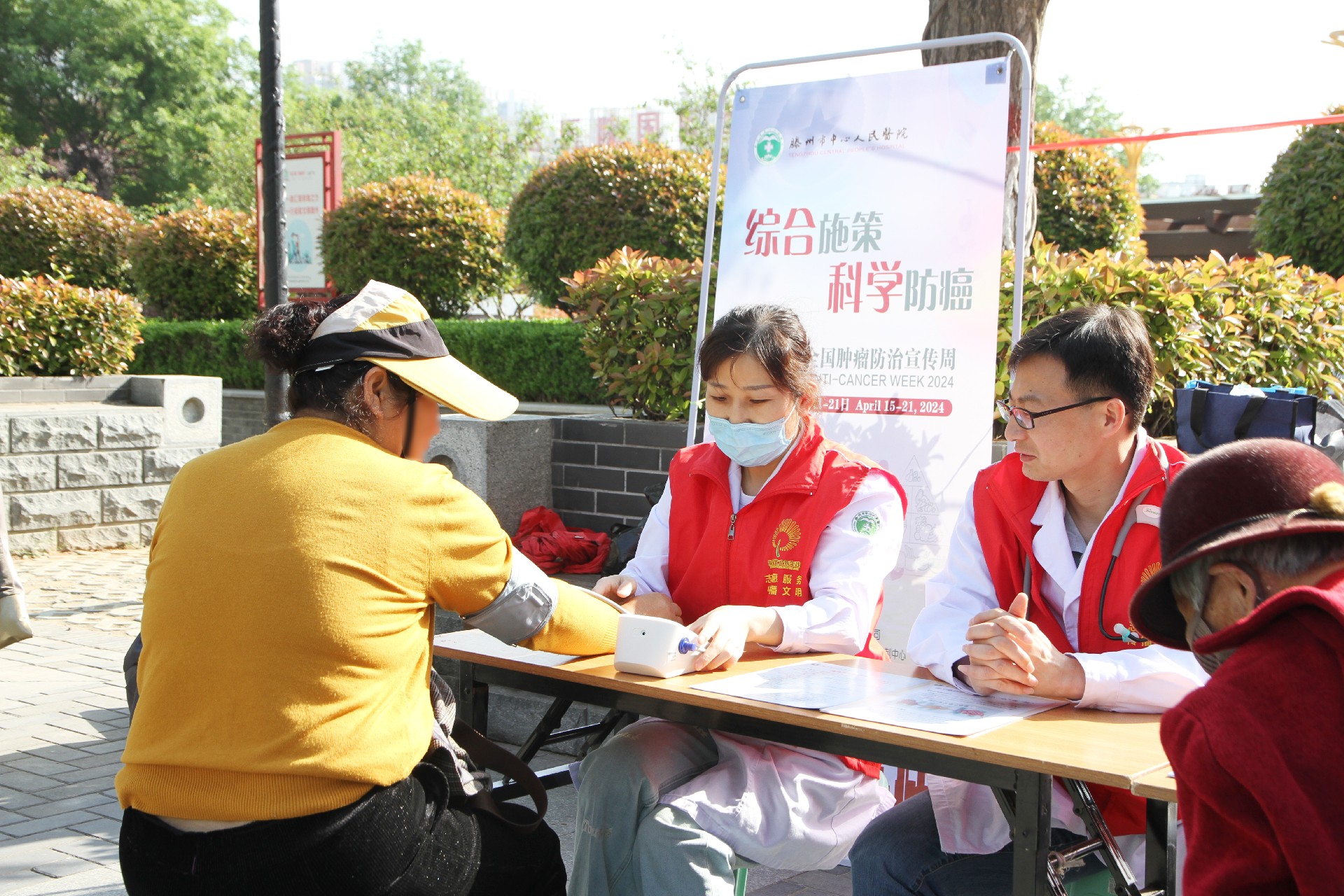 4月18日上午,我院公共衛(wèi)生科組織腫瘤科和消化內(nèi)科醫(yī)護(hù)團(tuán)隊(duì),在荊河街道九州清晏社區(qū)舉行系列宣傳活動(dòng)。