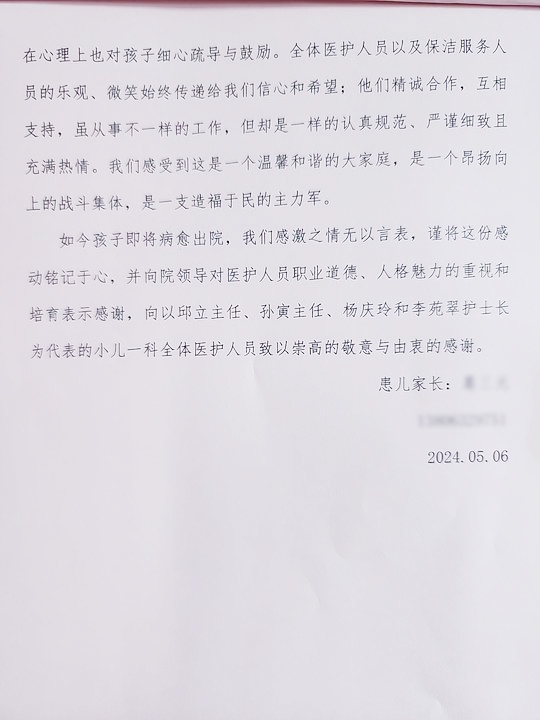 在治療期間,患兒家長孫女士親眼目睹了醫(yī)護(hù)人員耐心細(xì)致、和藹可親的工作態(tài)度,讓她在焦躁中感受到了溫暖,也堅(jiān)定了信心,表示一定要贈(zèng)送錦旗表達(dá)感激之情。