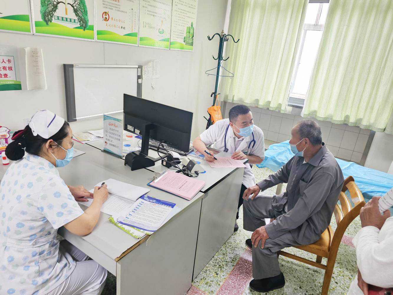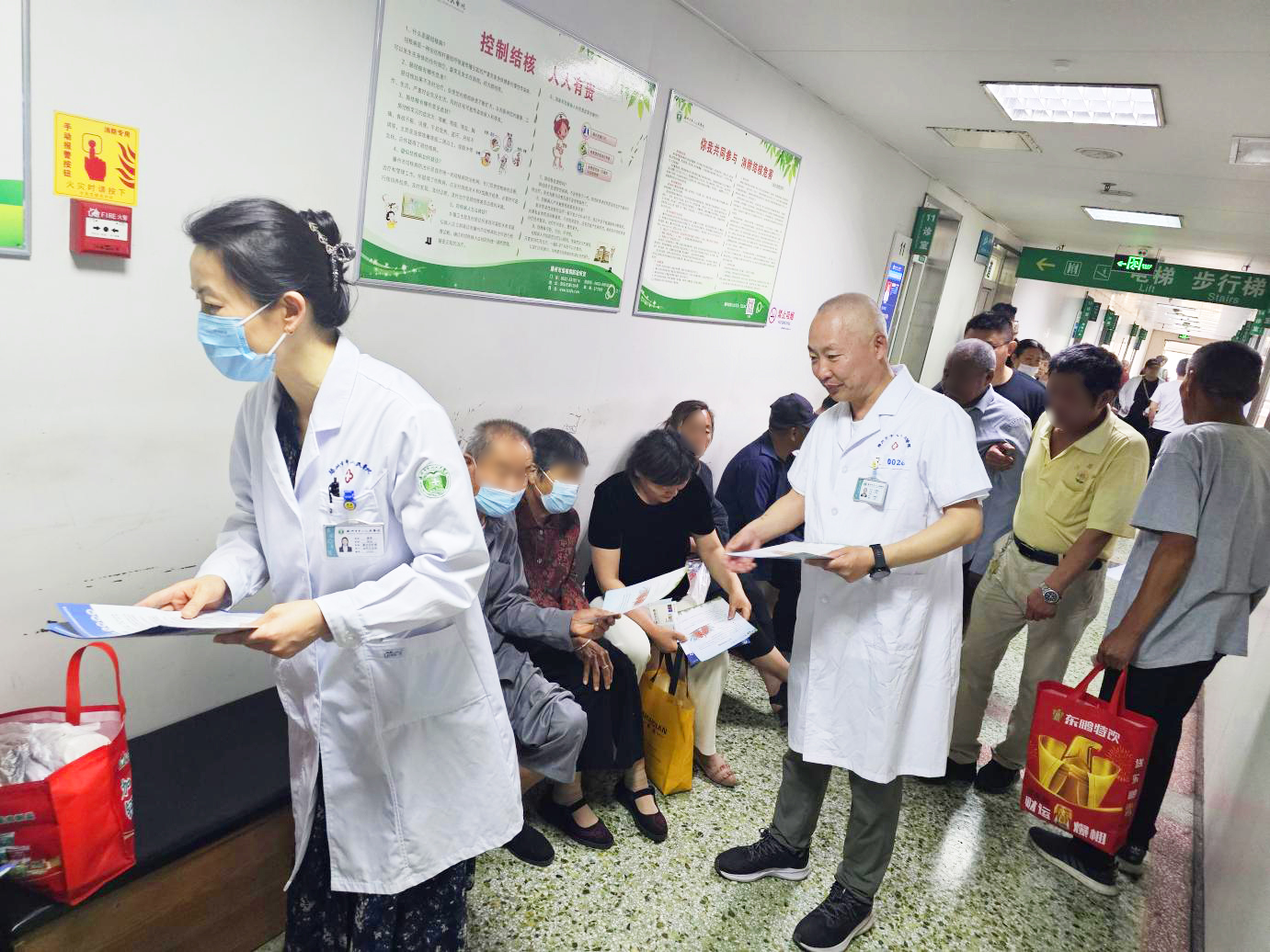 醫(yī)務(wù)人員在內(nèi)科候診區(qū)向群眾,講解煙草危害和吸煙容易誘發(fā)的多種疾病及預(yù)防常識,并發(fā)放控?zé)熜麄鞑牧稀?/span>