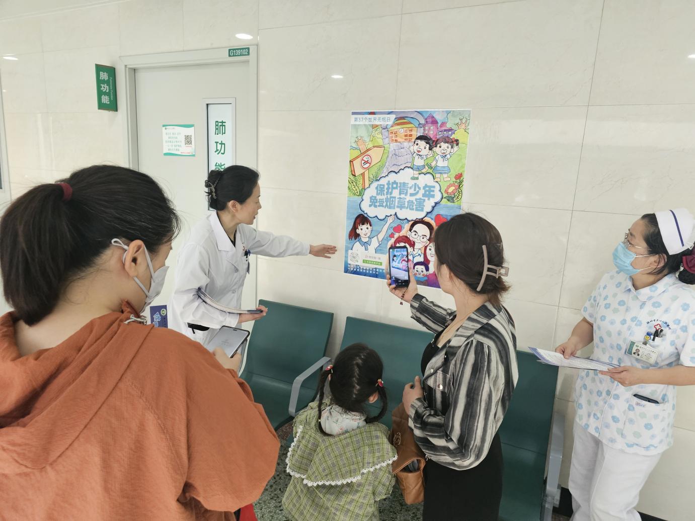 兒科候診區(qū),醫(yī)務(wù)人員利用戒煙平臺為家長和孩子們科普無煙家庭的重要性以及煙草對人體的危害,加強青少年對控?zé)熇砟畹睦斫夂驼J(rèn)同,自覺樹立控?zé)熞庾R,養(yǎng)成健康的生活方式。