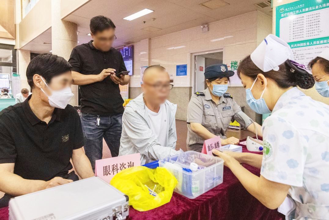 6月5日上午,在眼科主任王兵、護士長唐蕾蕾的帶領(lǐng)下,醫(yī)護人員們在門診一樓大廳開展義診及科普宣傳活動?;顒又?,專家們耐心地回答群眾咨詢的各種問題,并對有眼部疾患的市民進行初步的裂隙燈檢查、眼底篩查、眼壓檢查等,細致地講解疾病成因和注意事項,給出下一步檢查和治療建議。同時,現(xiàn)場免費測量血壓、檢測血糖;發(fā)放白內(nèi)障等眼疾的科普宣傳資料,讓群眾了解白內(nèi)障的成因,何時需要手術(shù)以及手術(shù)的方式等,做到眼疾早發(fā)現(xiàn)、早診斷、早治療。
