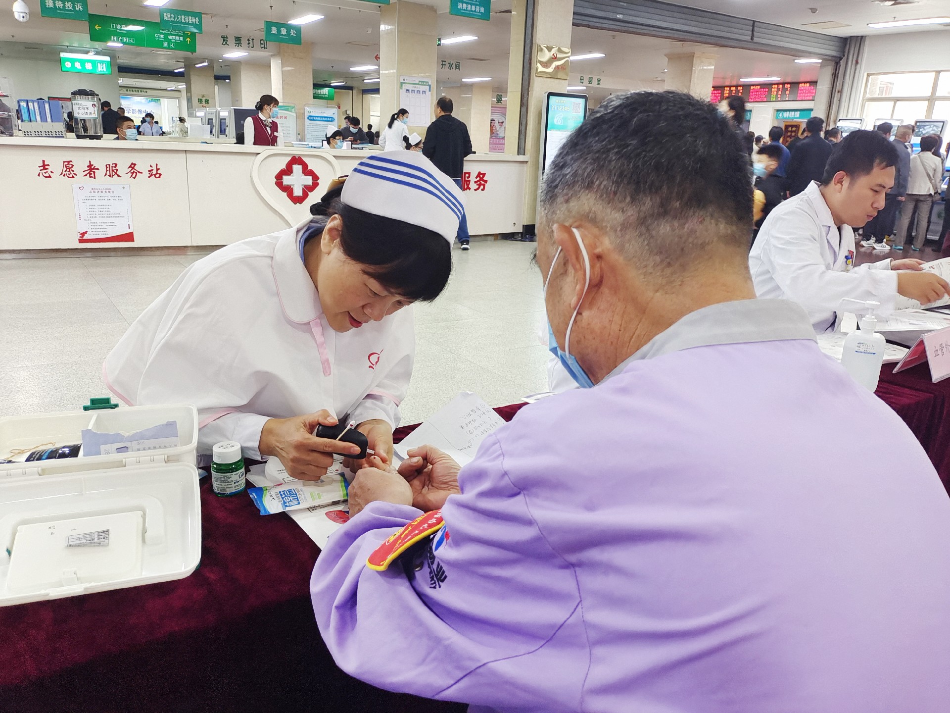 同時(shí),現(xiàn)場(chǎng)還免費(fèi)為群眾提供血壓、血糖等項(xiàng)目的檢測(cè)服務(wù),并發(fā)放宣傳彩頁(yè),讓群眾更加直觀地了解血栓的危害、防治方法和注意事項(xiàng)。
