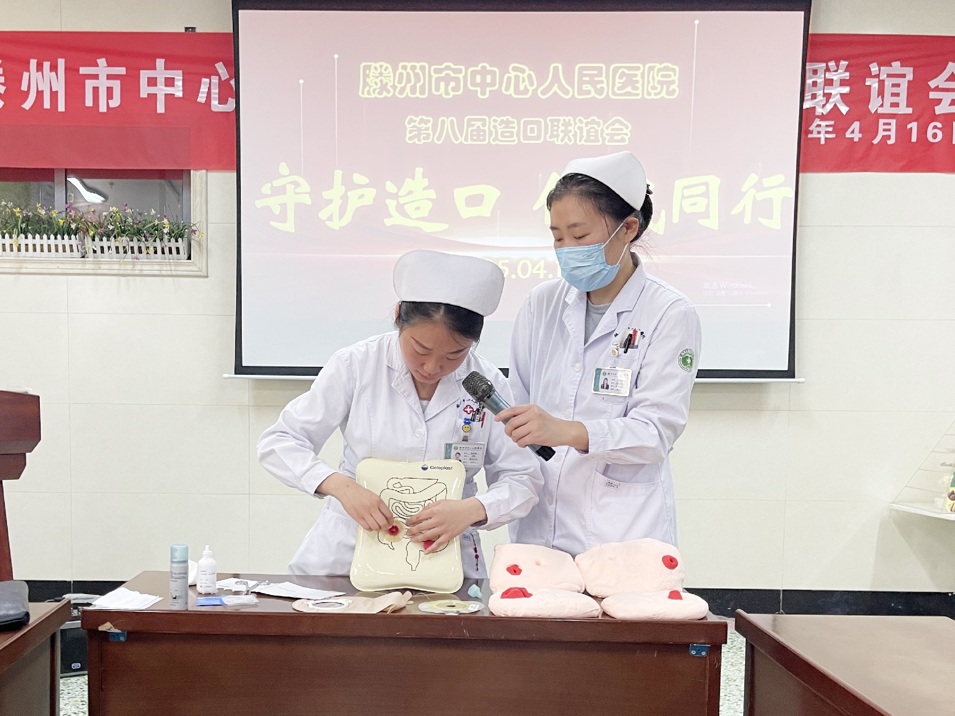 會(huì)議設(shè)置了知識(shí)講座、流程演示、有獎(jiǎng)競(jìng)答、現(xiàn)場(chǎng)答疑等環(huán)節(jié)。肛腸外科副主任曹成波做“結(jié)直腸腫瘤的前世今生”講座,從專業(yè)角度講述大腸腫瘤的病因、預(yù)防篩查及術(shù)后全程康復(fù)管理。邵鵬護(hù)士長(zhǎng)對(duì)造口并發(fā)癥的預(yù)防護(hù)理、造口人士日常生活中如何穿衣、運(yùn)動(dòng)、飲食、沐浴等進(jìn)行了詳細(xì)的講解。張亭亭、楊秀娟護(hù)士現(xiàn)場(chǎng)演示造口護(hù)理及造口袋更換流程、粘貼固定技巧。
