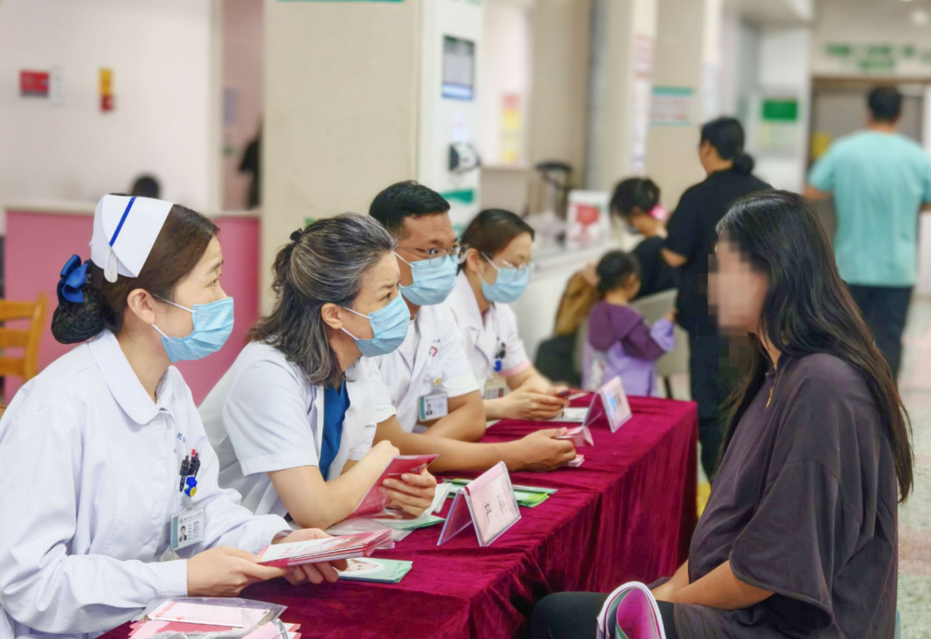 活動(dòng)現(xiàn)場(chǎng),咨詢者絡(luò)繹不絕。產(chǎn)科專家針對(duì)孕前、孕期的產(chǎn)前篩查、遺傳咨詢、圍產(chǎn)期保健等孕產(chǎn)婦家庭關(guān)心的問(wèn)題,詳細(xì)拆解孕產(chǎn)全周期要點(diǎn);營(yíng)養(yǎng)科專家針對(duì)不同孕期需求及常見(jiàn)誤區(qū)給出方案;兒科專家聚焦新生兒篩查與嬰幼兒發(fā)育監(jiān)測(cè)問(wèn)題進(jìn)行答疑解惑?,F(xiàn)場(chǎng)還通過(guò)展板和發(fā)放科普資料進(jìn)行宣傳出生缺陷防治知識(shí),同時(shí)免費(fèi)提供血壓、血糖檢測(cè)等服務(wù)。