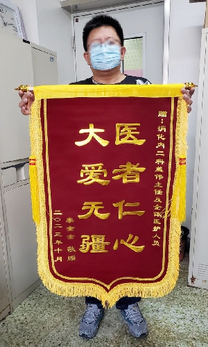 “醫(yī)者仁心,大愛無疆”。近日,消化科二病區(qū)收到一面錦旗和一封感謝信,患者及家屬表達了對醫(yī)護人員深深的感激之情?;颊呃钆?,孕27周,9月30日,因“腹痛”就診急診內科,以“腹痛、膽囊結石伴膽囊炎”收入消化科二病區(qū)。蓋偉主任高度重視,及時上報產安科,并請肝膽外科、產科會診,同時與家屬溝通病情。住院期間給予積
