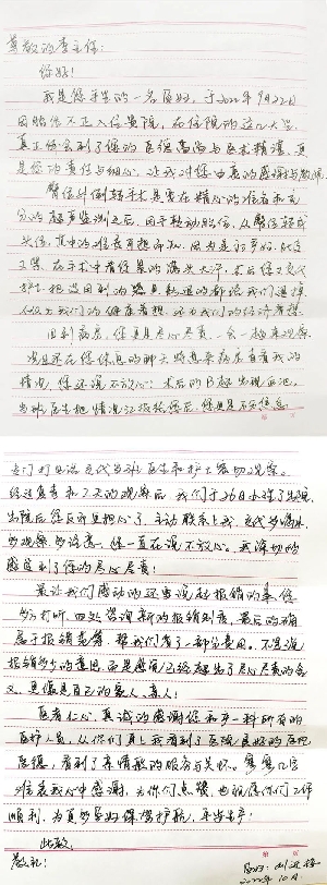 【滿意滕醫(yī)】@李楠主任、張存蘭護(hù)士有感謝信,請(qǐng)查收