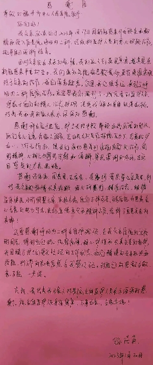 @呼吸內(nèi)二科,有封感謝信請(qǐng)查收