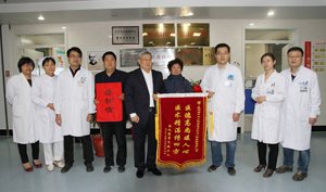 退休干部孔祥蘭,因患慢性支氣管炎在外院久治不愈,憋喘重,經(jīng)過呼吸內(nèi)一科高志主任醫(yī)師及甘艷護士長帶領的醫(yī)護團隊精心醫(yī)治 ,住院12天痊愈出院,特送錦旗一面,以