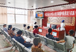 7月16日上午,我院中醫(yī)科在候診大廳舉行慶?!吨腥A人民共和國中醫(yī)藥法》實施8周年科普宣講活動。中醫(yī)科、中藥房、理療科醫(yī)護人員,以及候診患者及陪人共同參加活動?;顒又?,中醫(yī)科主任徐慶田系統(tǒng)講述了《中華人民共和國中醫(yī)藥法》的立法背景、目的及重要意義,詳細闡述了《中醫(yī)藥法》的總則、中醫(yī)藥服務、中醫(yī)藥人才培養(yǎng)、