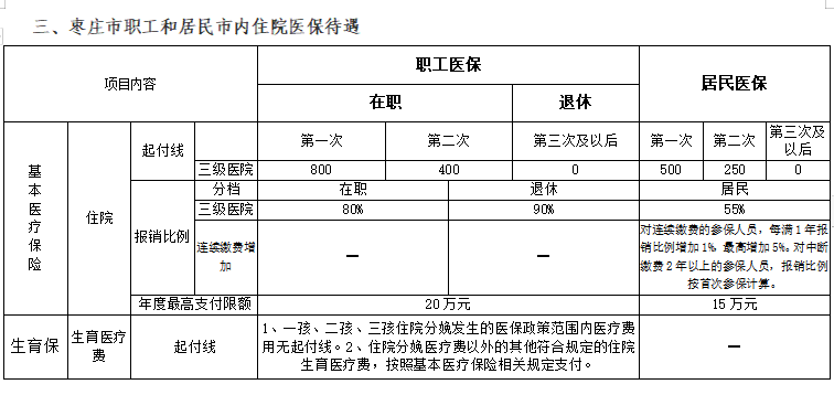 三、棗莊市職工和居民市內(nèi)住院醫(yī)保待遇