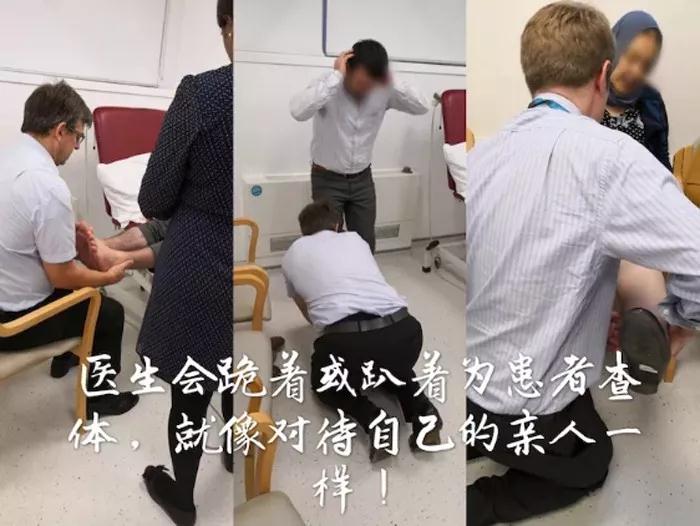 “主動地歡迎,積極地尊重,清晰地溝通,可見性安心”是英國倡導(dǎo)的醫(yī)療人文關(guān)懷的理念。以患者進入手術(shù)室后為例,醫(yī)師與患者見面后,非常禮貌地與患者打招呼,稱呼為gentleman或lady,有時還要握著患者的手緩解其緊張的情緒。在核對患者信息時也不會拘謹(jǐn),像老朋友在聊天。醫(yī)生可以跪在地上給患者檢查,醫(yī)生可以抱著患者的鞋底感受關(guān)節(jié)的活動范圍等等。