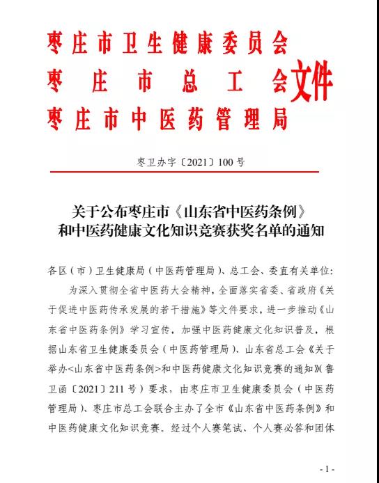 我院醫(yī)師在棗莊市《山東省中醫(yī)藥條例》和中醫(yī)藥健康文化知識競賽中榮獲佳績!