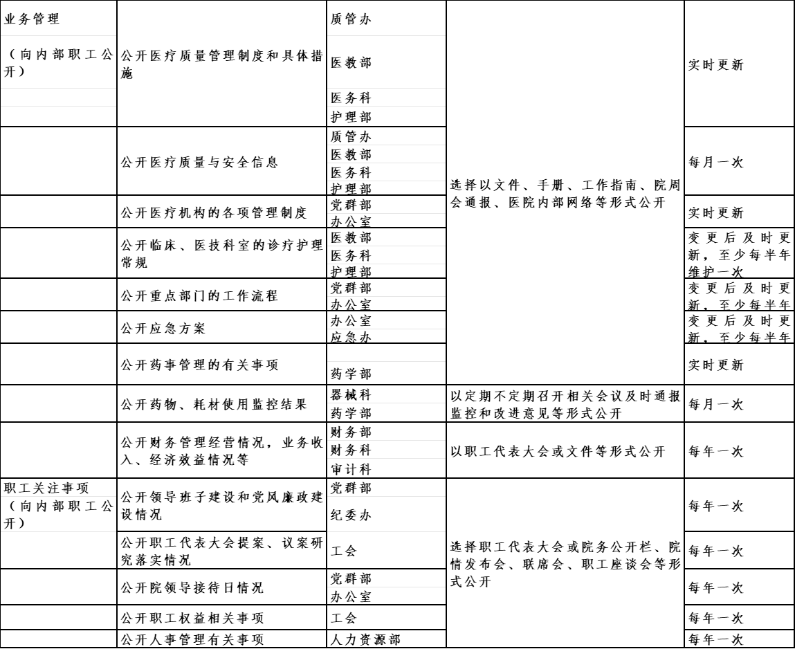 2.協(xié)調(diào)醫(yī)院內(nèi)部各部門、各科室之間的院務(wù)公開(kāi)工作,明確各部門、各科室的職責(zé)分工,形成工作合力。
