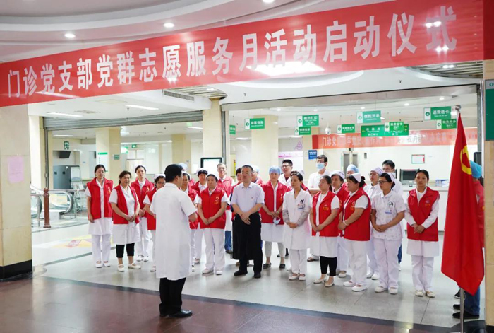 為迎接中國共產黨成立100周年,慶祝七一的到來,讓來醫(yī)院就診的患者感到診療的快速便捷,將“學黨史、轉作風、抓落實”落到實處,門診黨群醫(yī)護團體在門診分管領導李培永的大力支持、黨支部書記嚴旭、門診部主任趙逢玲的帶領下,黨群聯手開展“我為群眾辦實事”門診志愿服務月實踐活動。本次活動于近日在門診一樓開啟,門診黨支部書記嚴旭主持啟動儀式,李培永副院長、黨群部王維主任參加啟動儀式。