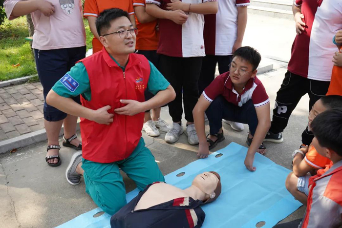 9月14日下午,在新學(xué)期開(kāi)學(xué)之初,我院工會(huì)、團(tuán)委和公共衛(wèi)生科共同組織醫(yī)務(wù)志愿者走進(jìn)鮑溝鎮(zhèn)東皇甫小學(xué)開(kāi)展健康教育、急救培訓(xùn)活動(dòng),以專(zhuān)業(yè)的技能和飽滿(mǎn)的熱情積極踐行“我為群眾辦實(shí)事”的要求。