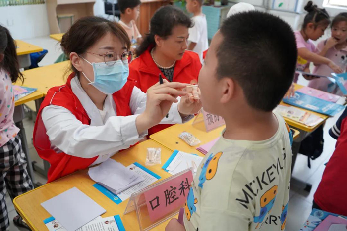 口腔科醫(yī)生李潔和毛傳霞對(duì)一年級(jí)到六年級(jí)的小學(xué)生們進(jìn)行了仔細(xì)的口腔健康檢查,查看其有無(wú)齲病,有無(wú)牙列不齊、反合等常見(jiàn)病,以書(shū)面形式反饋給他們,并發(fā)放口腔保健知識(shí)宣傳資料,指導(dǎo)學(xué)生們養(yǎng)成良好的刷牙習(xí)慣和口腔健康行為。