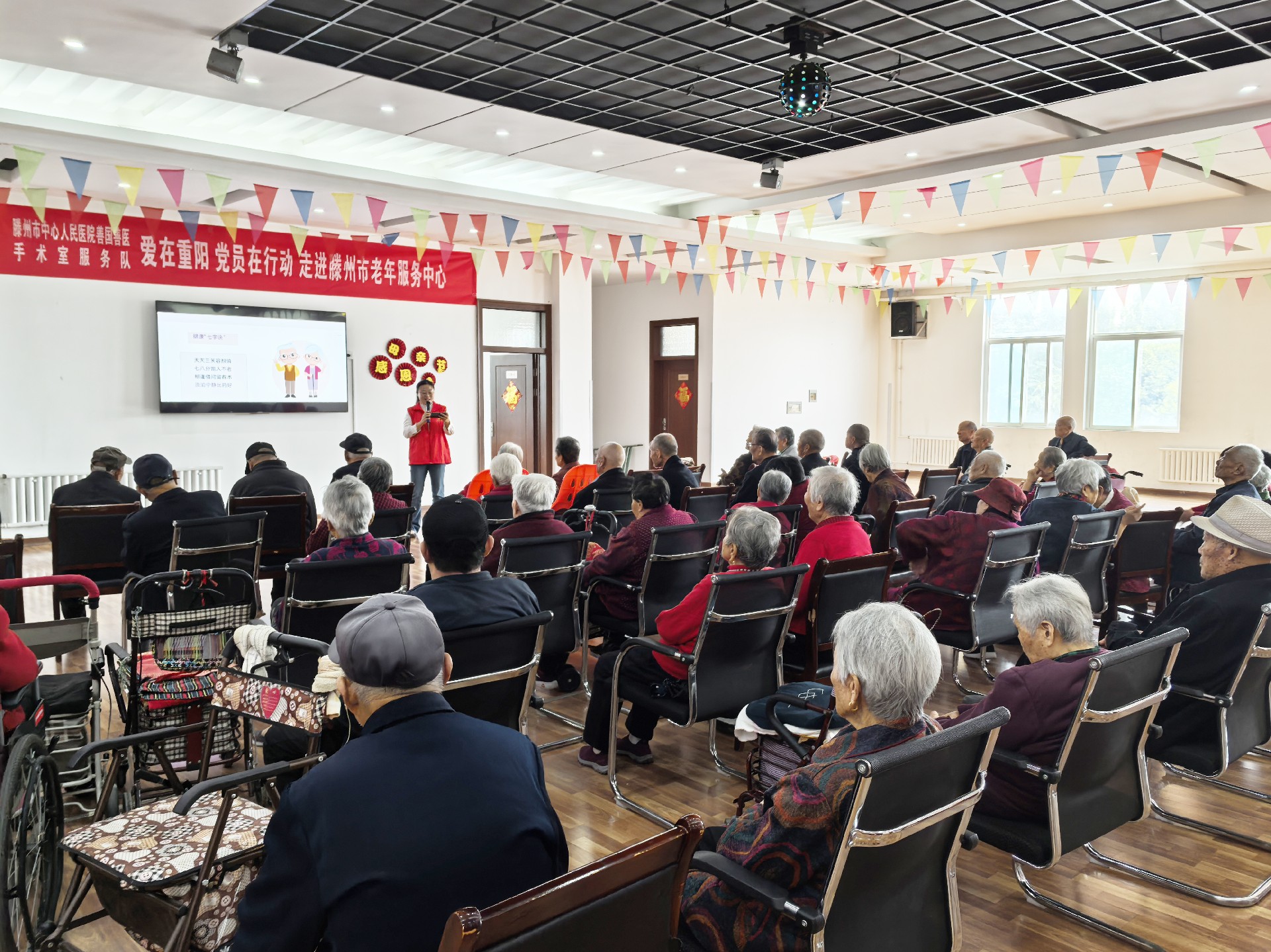 手術(shù)室黨支部書記李方姣首先向各位老人送去關(guān)懷和祝福,愿他們健康長壽,幸福安康?;顒釉谥鞒秩碎Z丹親切、溫暖的開場白中,拉開帷幕。