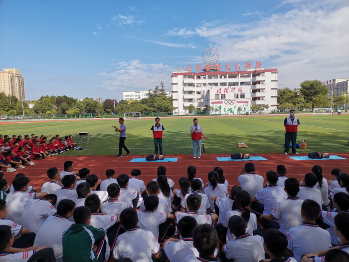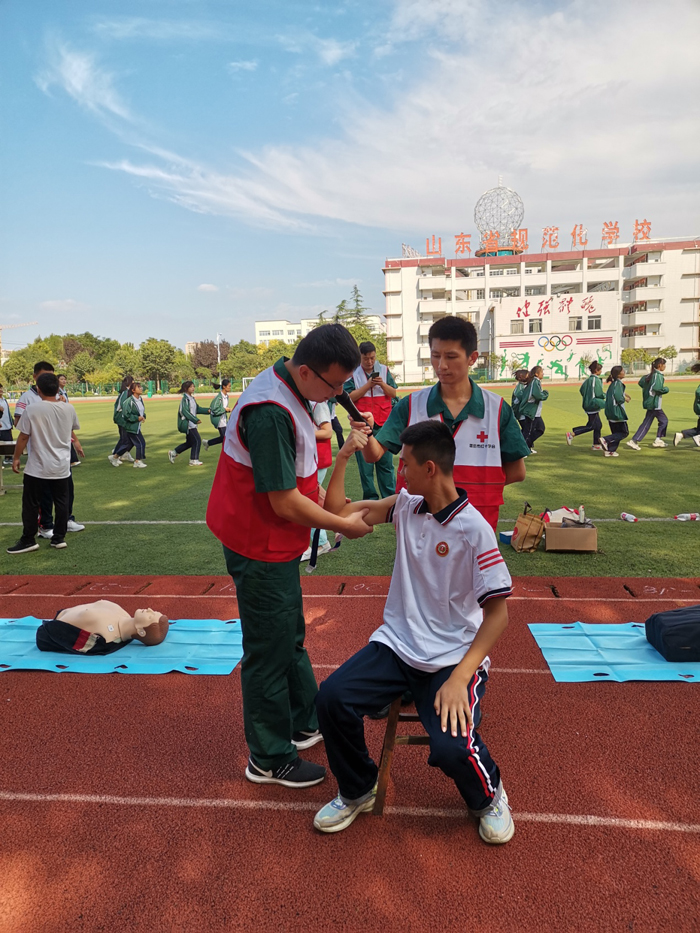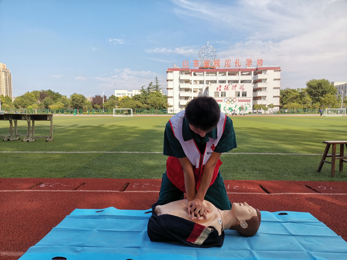 為進(jìn)一步落實(shí)校園應(yīng)急救護(hù)培訓(xùn),普及應(yīng)急救護(hù)知識,提高校園新生自救互救能力,應(yīng)滕州市紅十字會邀請,9月7日,我院紅十字應(yīng)急救護(hù)志愿者服務(wù)隊(duì)在韓梅護(hù)士長帶領(lǐng)下來到滕州市實(shí)驗(yàn)高中,對700余名新生進(jìn)行應(yīng)急救護(hù)知識培訓(xùn)。