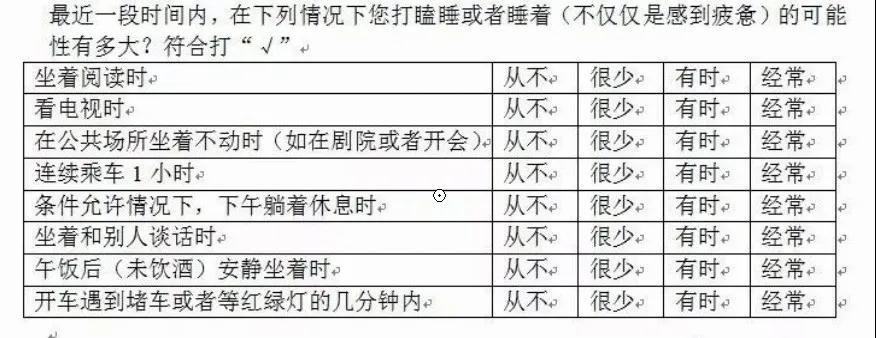 其次,自我評(píng)價(jià)一下白天的嗜睡情況。