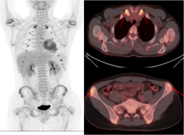 2017年,知名期刊《Ann Rheum Dis》上發(fā)表的一篇文章指出,PET/CT對不明原因發(fā)熱和炎癥的診斷價值很大;對于50歲以上,C-反應蛋白(CRP)超過30mg/l的患者,即使不發(fā)熱,也是可以做PET/CT的,會比發(fā)熱的患者有更多的機會通過PET/CT檢查獲得明確的診斷。