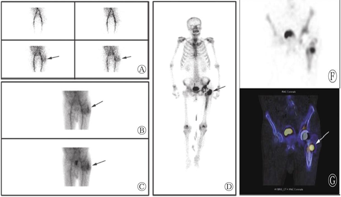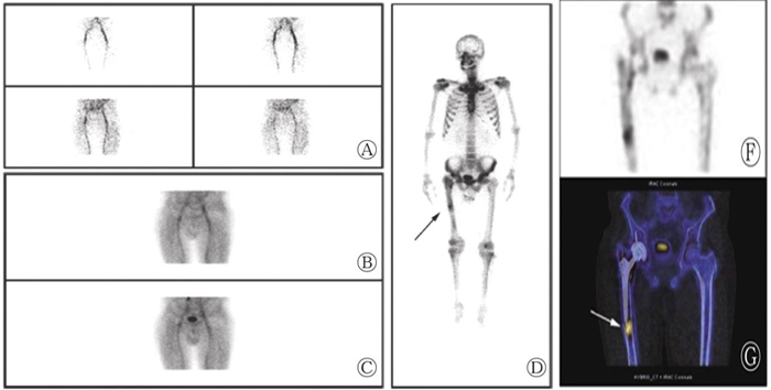 ECT三時(shí)相骨顯像是靜脈注射骨顯像劑后于不同時(shí)間進(jìn)行動(dòng)態(tài)連續(xù)顯像,包括血流相、血池相和延時(shí)相。通過(guò)顯示關(guān)節(jié)假體周圍局部軟組織的血流灌注改變情況,能夠有效地鑒別假體周圍感染與無(wú)菌性松動(dòng)。