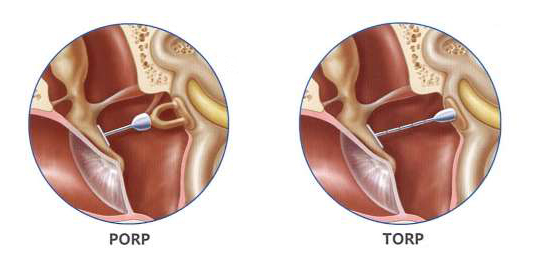 部分植入聽(tīng)小骨假體(PORP):適用于部分聽(tīng)骨置換;鐙骨及功能被保留。