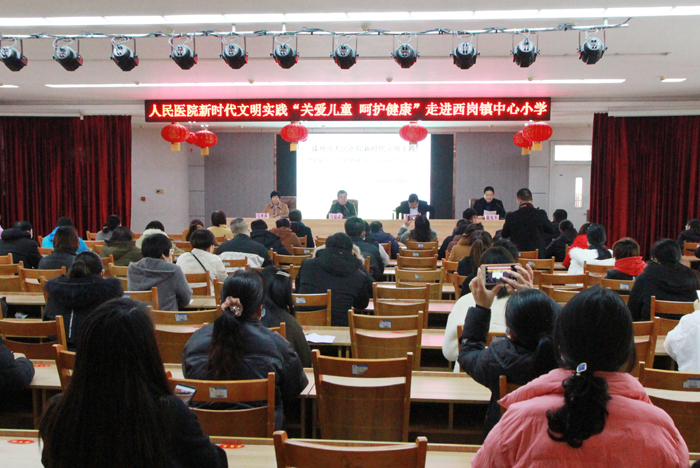 11月26日,我院新時(shí)代文明志愿者“愛護(hù)兒童呵護(hù)健康”宣講團(tuán),走進(jìn)西崗鎮(zhèn)中心小學(xué)。西崗鎮(zhèn)人大主任李運(yùn)海,西崗鎮(zhèn)中心小學(xué)領(lǐng)導(dǎo)班子,我院黨委副書記馬瑞武,工會(huì)、團(tuán)委、宣傳科負(fù)責(zé)人,學(xué)校老師,部分家委會(huì)成員參加活動(dòng)。