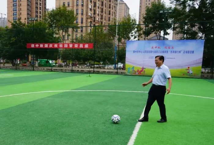 邢佑文致開幕辭,并宣布滕州市中心人民醫(yī)院第七屆職工足球比賽暨“農(nóng)商銀行杯”足球聯(lián)誼賽正式開始!他表示,足球是一項團(tuán)體性運(yùn)動,不是一個人的比賽,更能展現(xiàn)團(tuán)隊的凝聚力。本次足球賽,旨在提振廣大干部職工的精氣神,激發(fā)大家干事創(chuàng)業(yè)、奮勇拼搏的熱情和動力,向社會和群眾傳遞全民健身、健康促進(jìn)的生活理念。他希望參賽隊員一定要注意比賽中的人身安全,文明參賽,規(guī)范參賽,發(fā)揚(yáng)更高、更快、更強(qiáng)的奧運(yùn)精神,賽出水平,賽出風(fēng)格,積極展現(xiàn)我院職工的團(tuán)隊精神和健康向上的精神風(fēng)貌,用優(yōu)異的比賽為祖國慶生。